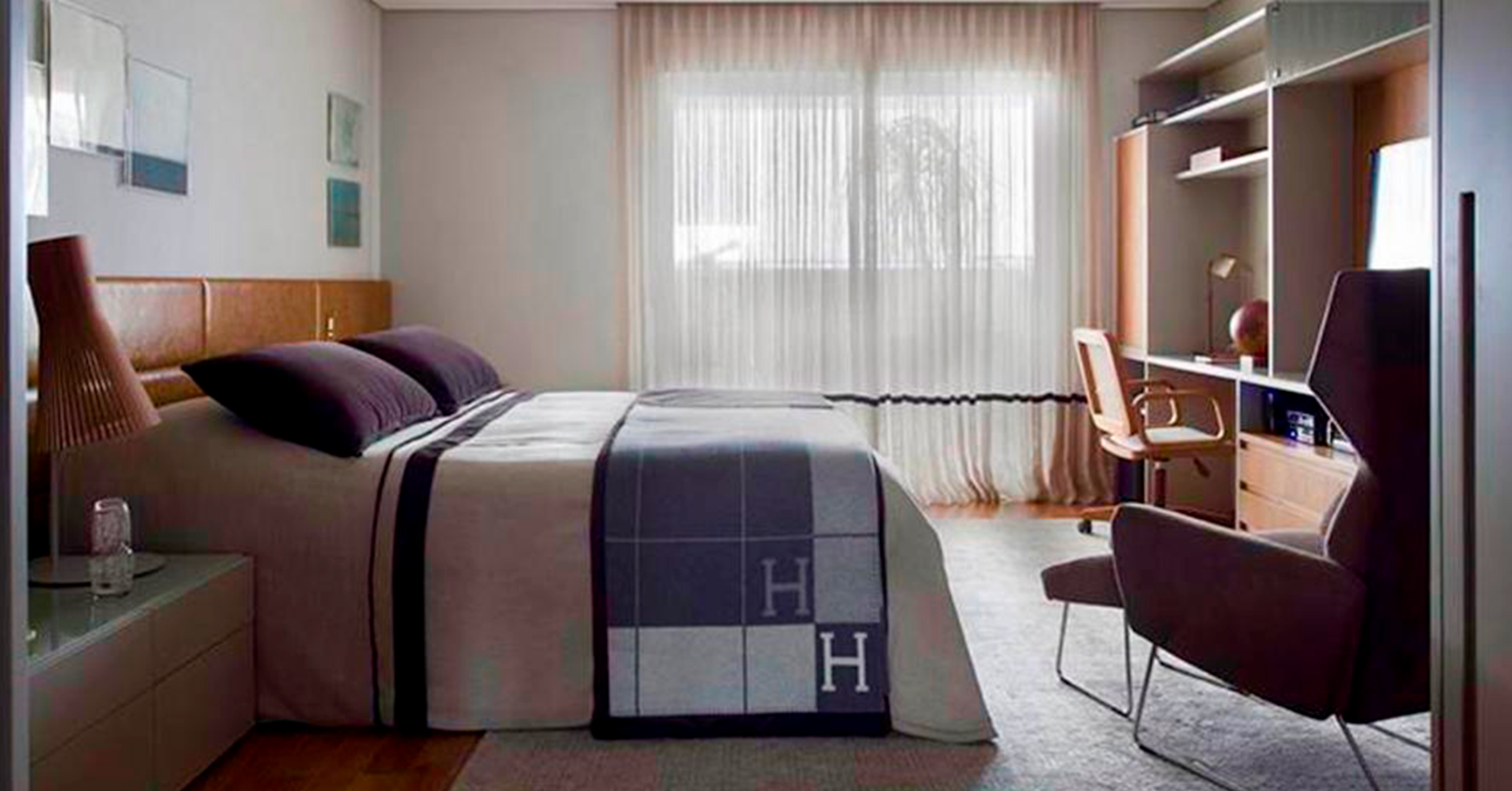 O imóvel também conta com mais 4 dormitórios, sendo duas suítes simples e uma máster. Ao explorar a cobertura, notamos que a iluminação natural está presente em vários ambientes, principalmente na suíte do casal: