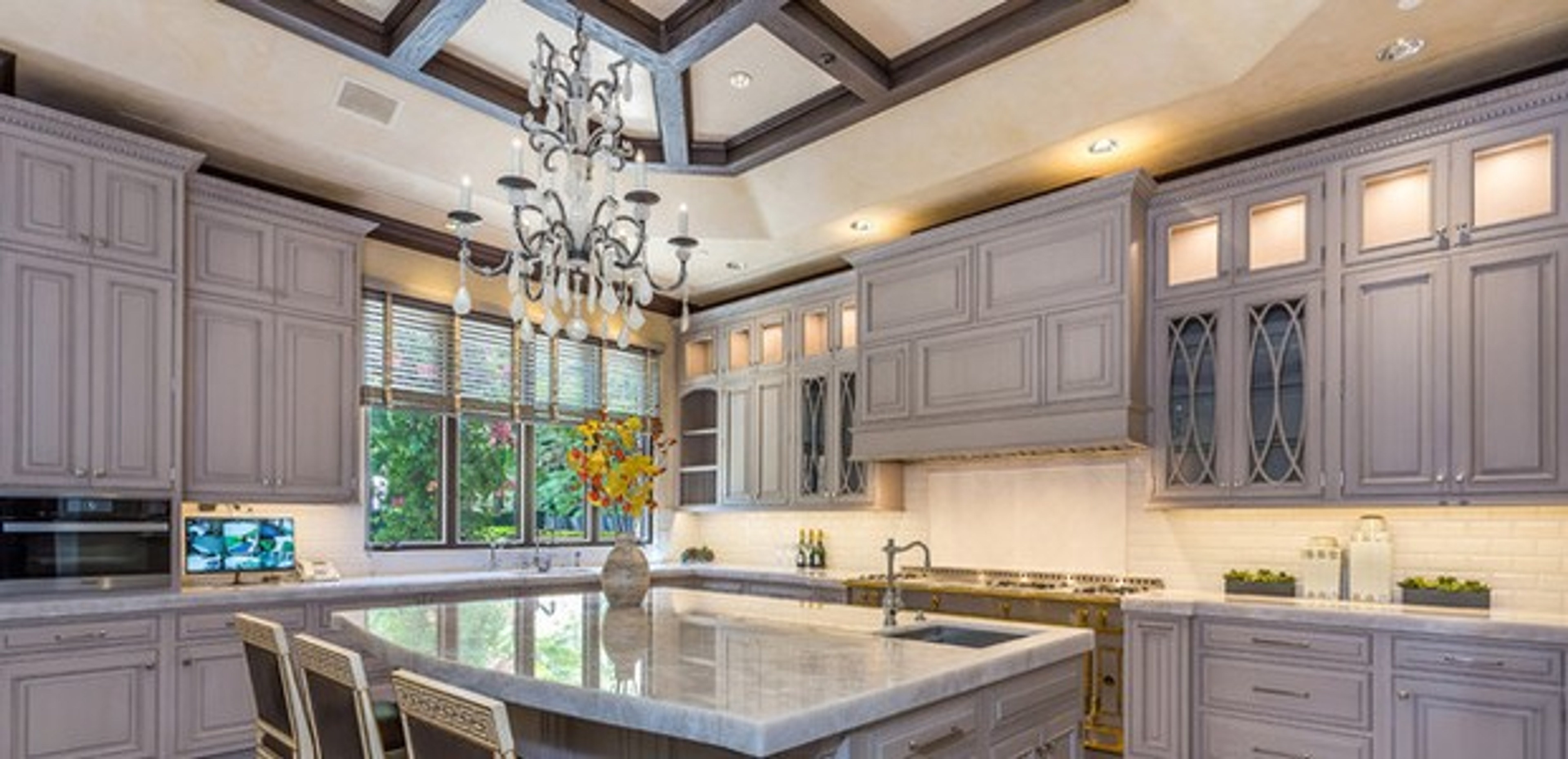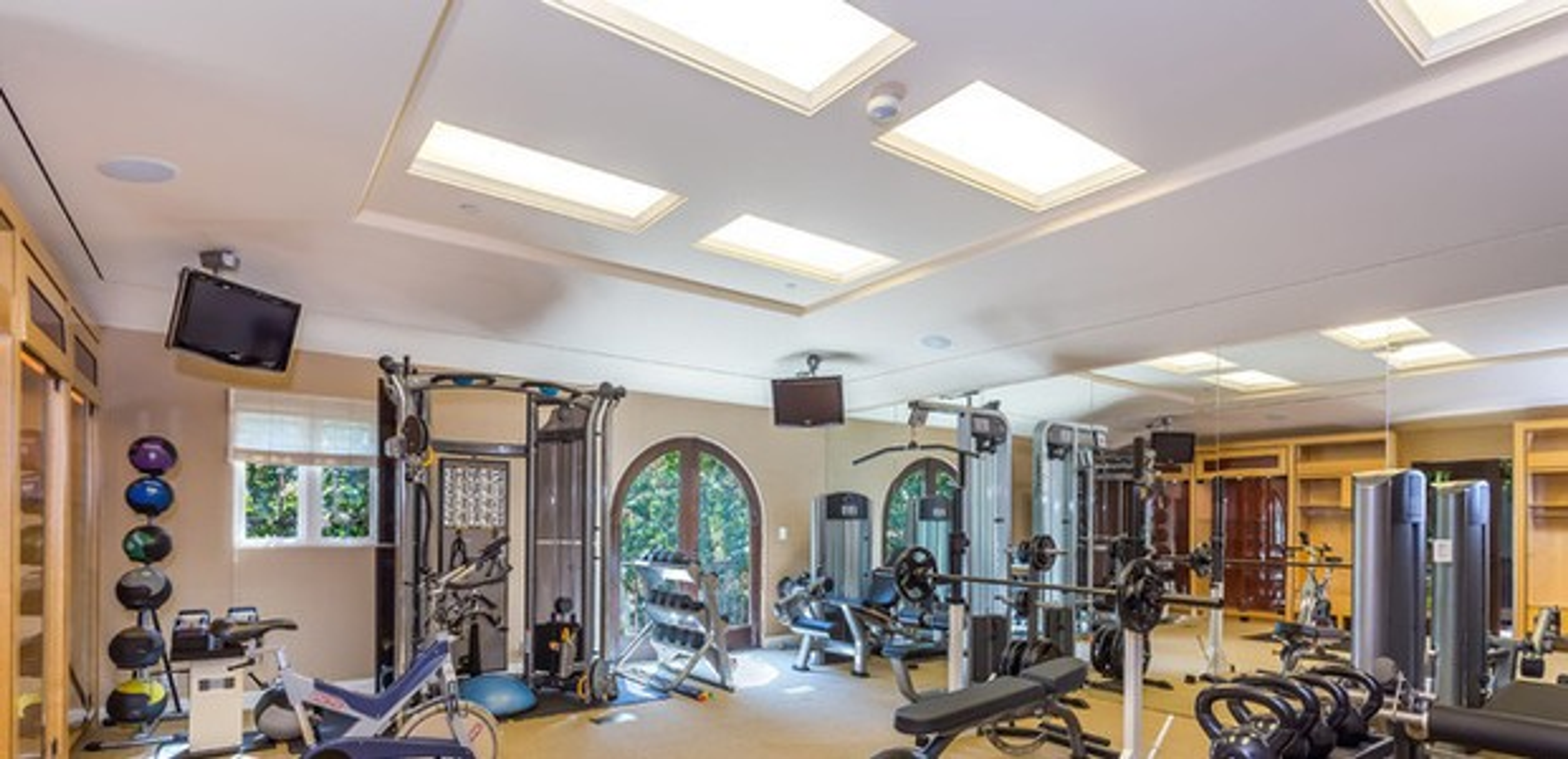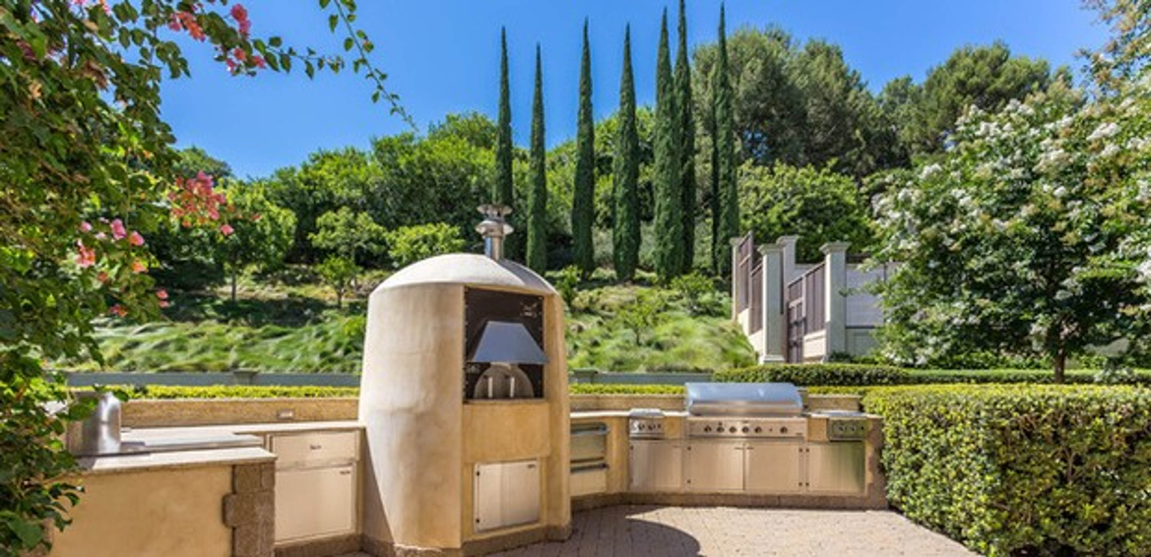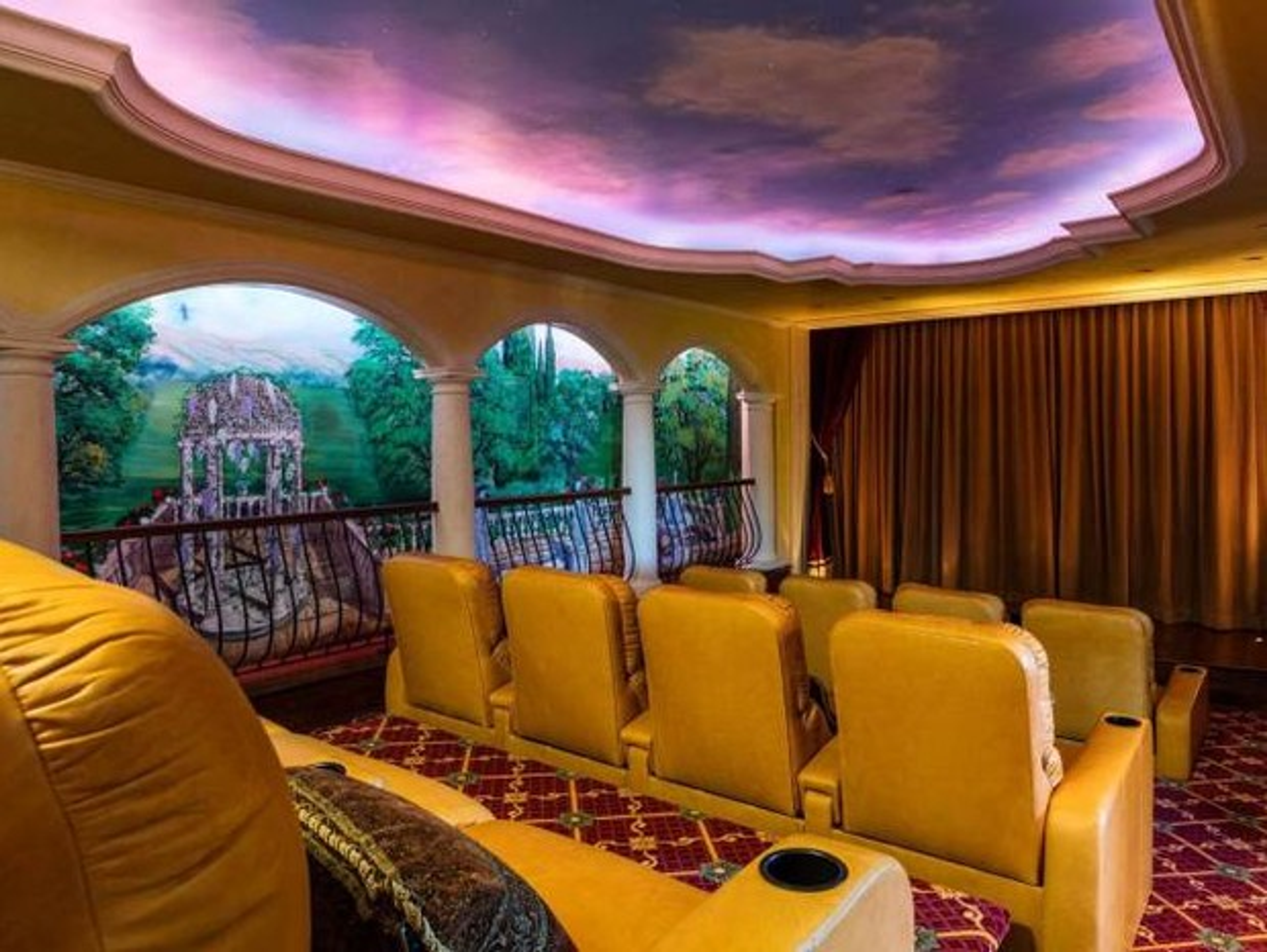 A propriedade tem cerca de 17 mil metros quadrados, e o terreno é divido entre a casa principal, a casa de hóspedes e uma cabana perto da piscina. O espaço tem seis quartos e dez banheiros, cozinha em mármore e lustre de cristais. A área externa é inspirada no estilo palaciano da Itália. O espaço ainda tem quadra de esportes, piscina em estilo grego, academia e cinema exclusivo.